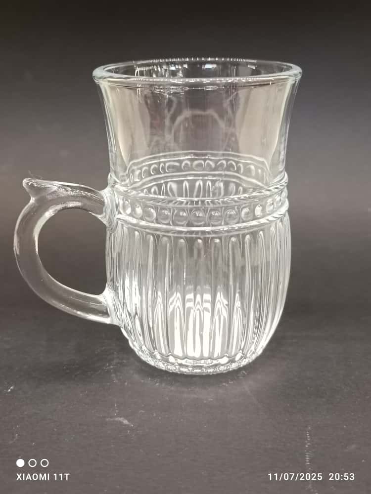 استکان شیشهای دستهدار لبه طلایی