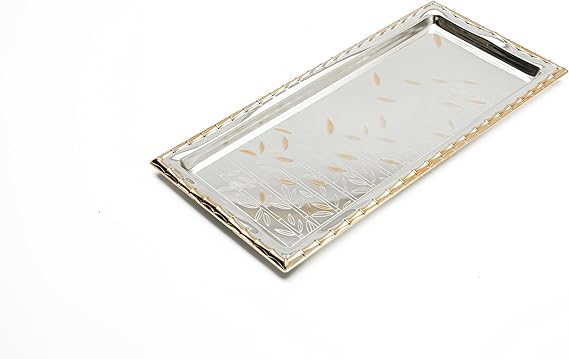 Zoltan rectangular tray with luxurious design in combination of silver and gold
